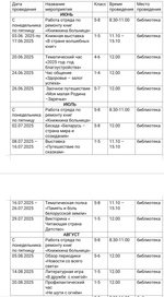 План работы школьной библиотеки во время летних каникул